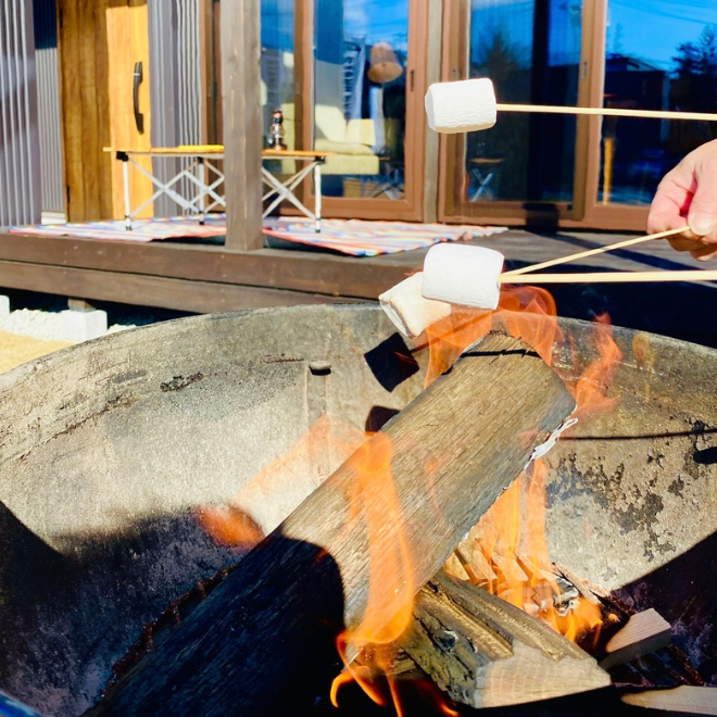 焚火のそばでほかほかと温まりながら、マシュマロを焼いて味わう体験イベントを開催します。
