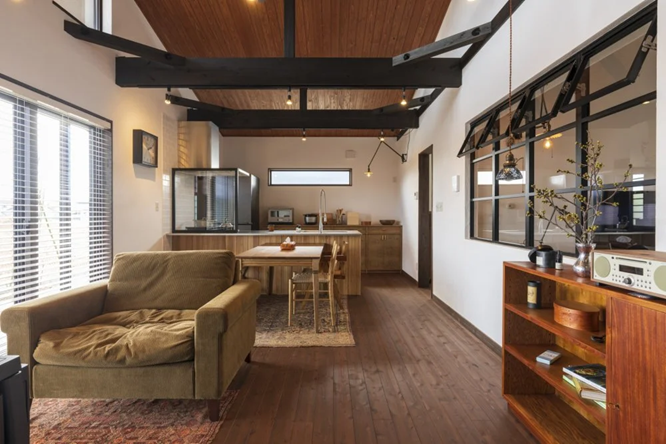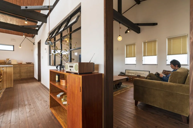 大阪の家具店『トラックファニチャー』を参考にした室内窓も印象的。