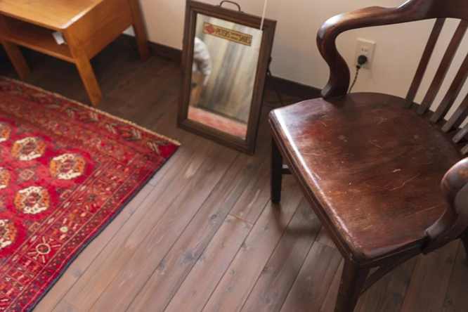ヴィンテージ家具が好きなので、空間はあえてシンプルに。木の質感や落ち着いた色合いが、持っている家具や道具を自然に引き立ててくれます。